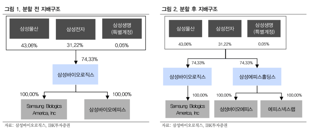 분할전 시가총액을 자산가치에 따라 나눈 것이지만, 주가가 상승하면 시가총액은 자연스럽게 회복이 된다. 증권업계도 분할 후 재상장할 경우 주가 상승으로 이어질 것으로 전망한다. 대체로 삼성바이오는 96조원(주가 210만원대)을 전망한다. 반면, 삼성바이오에피스는 12조원(주가 49만원)으로 기존(30.4조원) 대비 60% 가량 하락할 것이라는 관측이다. 삼성바이오만 놓고 보면 시총 상승 여력이 앞으로 더 높다는 것이다.