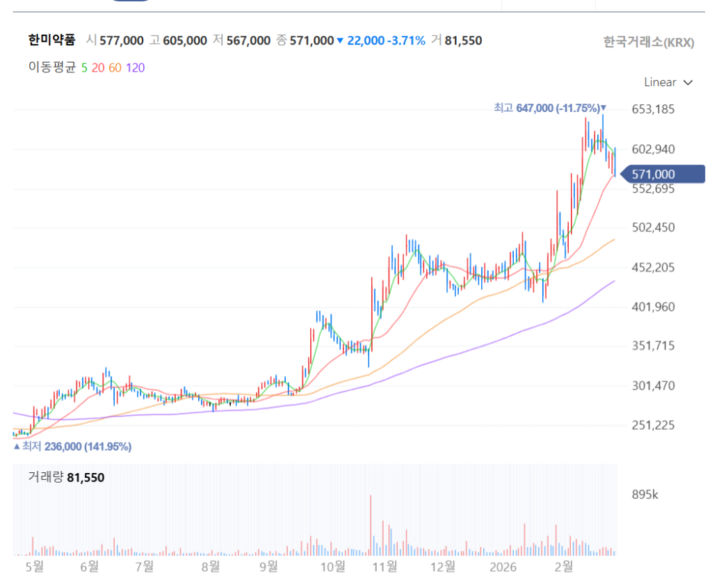 한미약품 최근 주가 모습. 네이버 차트 캡처
